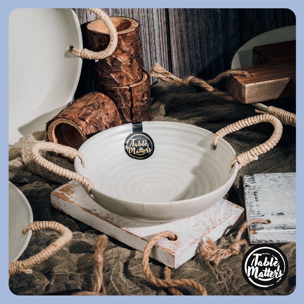 Dive into a realm where the past beautifully entwines with the present. Table Matters brings the Henso tableware. a gem that dazzles not just with its visual splendour but also its unmatched utility. At the heart of its design are two finely constructed hemp rope handles. shimmering in a delightful light brown. a nod to the rich heritage of dinnerware but with an undeniably modern twist.