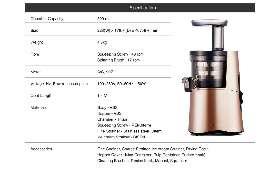 The Hurom’s HA-2600 Classic Series slow juicer is one that is loved by many for its sleek design. reliable performance. and excellent efficiency. Equipped with Hurom’s patented Slow Squeeze technology. it’s guaranteed to produce delicious. pulp-free and nutritional juice.